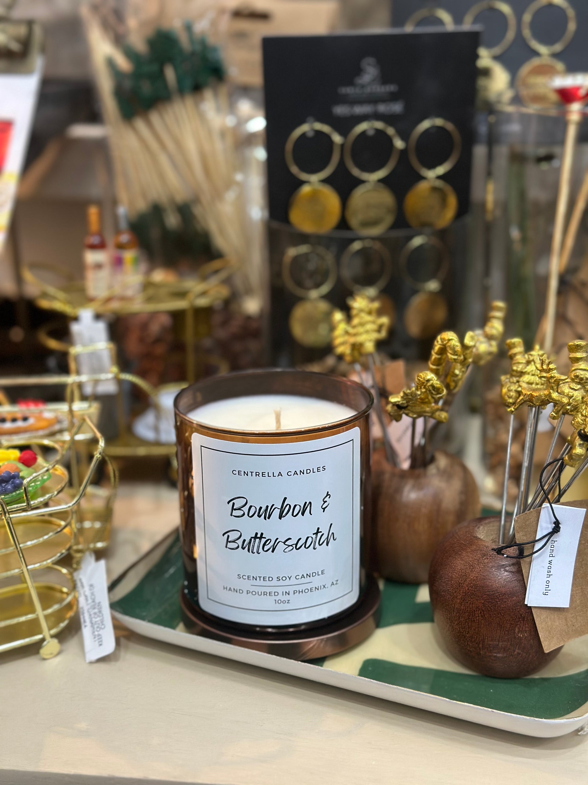Rich and sweet with a splash of boozy bourbon, this candle is the perfect addition to the Fall candle lineup! Butterscotch and brown sugar are balanced with bourbon, peppercorn, oak and a hint of patchouli.